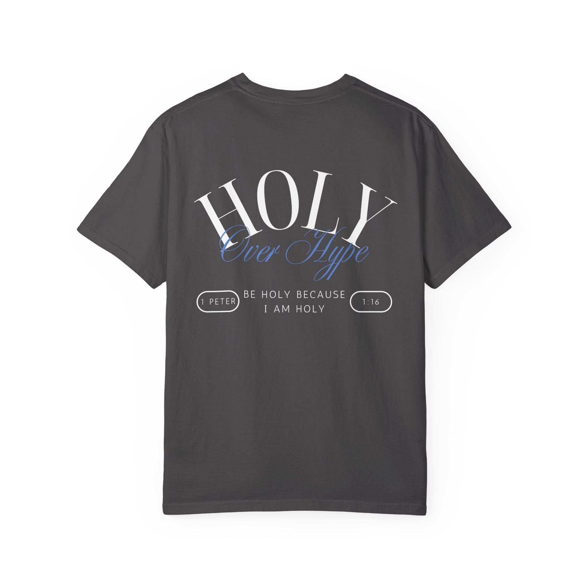 Choose Holiness Over Hype. Inspired by 1 Peter 1:16 — “Be holy because I am holy” — this design reminds believers to rise above trends and live set apart for Christ.